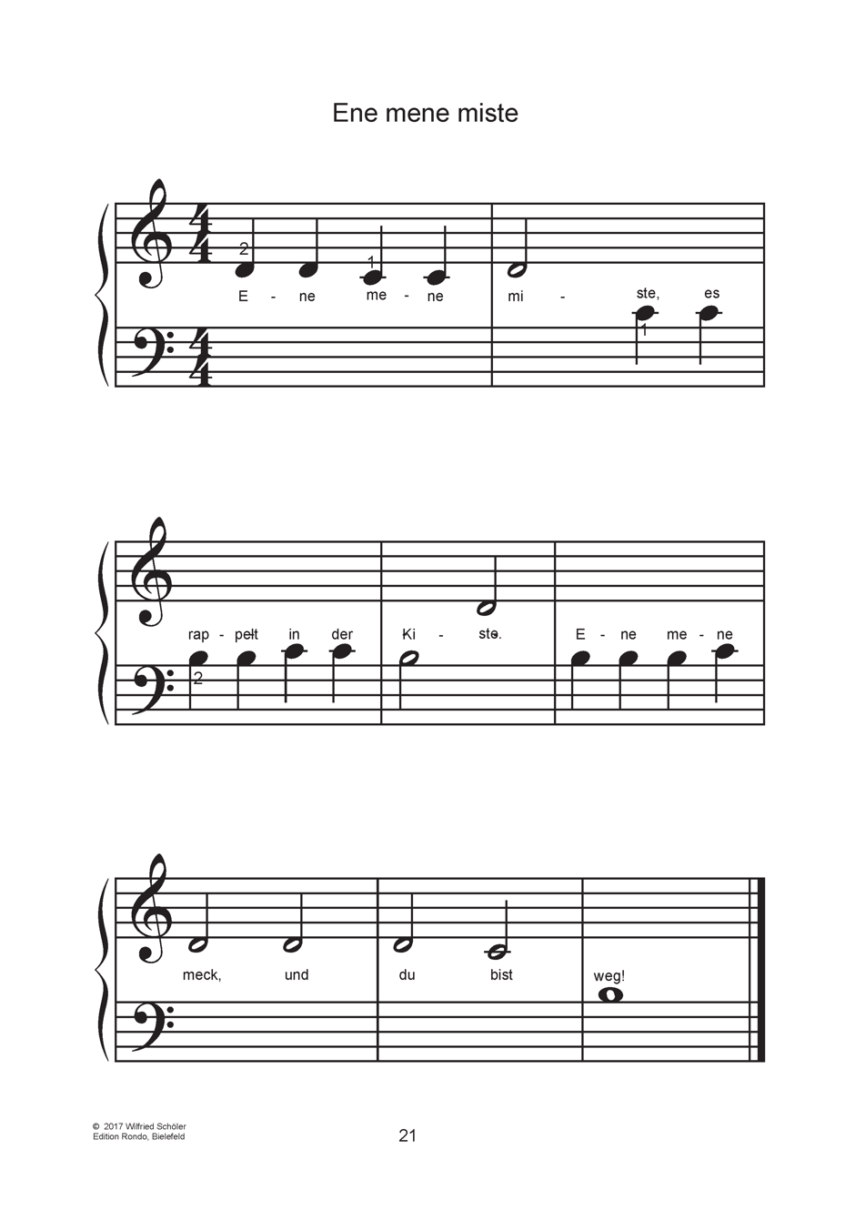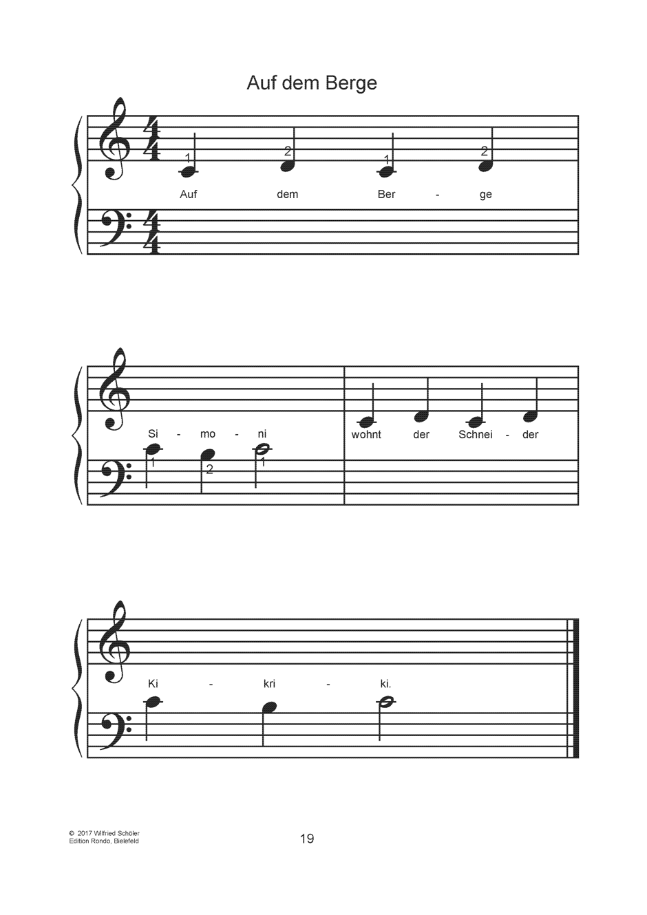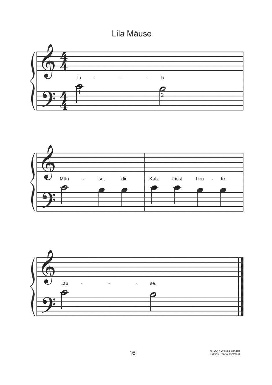 Diese Klavierschule ist für Kinder im Alter von ca. sechs bis acht Jahren gedacht. Die groß gedruckten Noten machen es den Kindern leichter, den Überblick zu bekommen. Der technische Fortschritt ist relativ langsam, so dass das Gelernte sich gut bei den Schülern festigen kann.