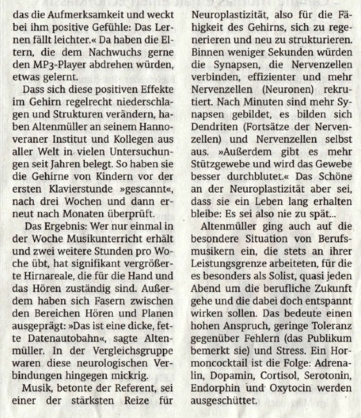 Hier ist ein Zeitungsartikel, der die Bedeutung des eigenen Musizierens auch wissenschaftlich unterstreicht: