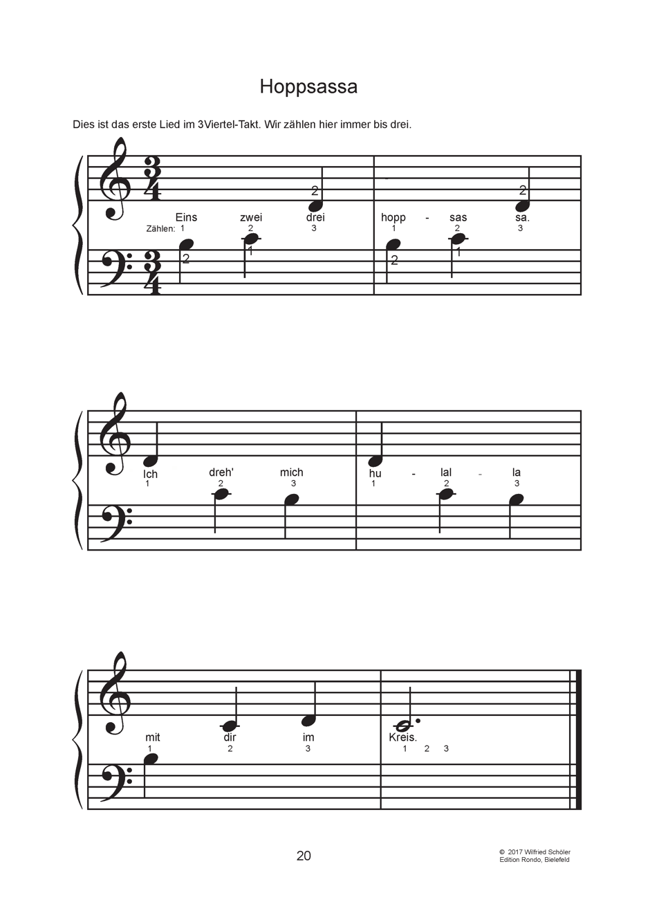 Diese Klavierschule ist für Kinder im Alter von ca. sechs bis acht Jahren gedacht. Die groß gedruckten Noten machen es den Kindern leichter, den Überblick zu bekommen. Der technische Fortschritt ist relativ langsam, so dass das Gelernte sich gut bei den Schülern festigen kann.
