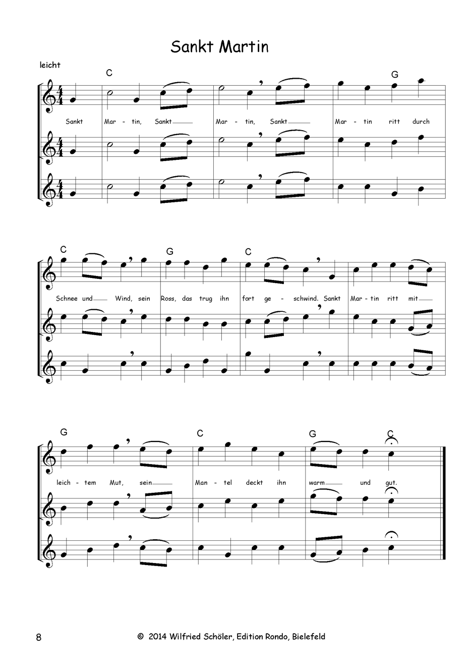 Die Liedsätze sind dreistimmig. Die ersten beiden Stimmen ergeben schon einen vollständigen Satz. Die 3. Stimme ist eine klangliche Erweiterung, kann aber bei Mangel an Mitspielern auch weggelassen werden.